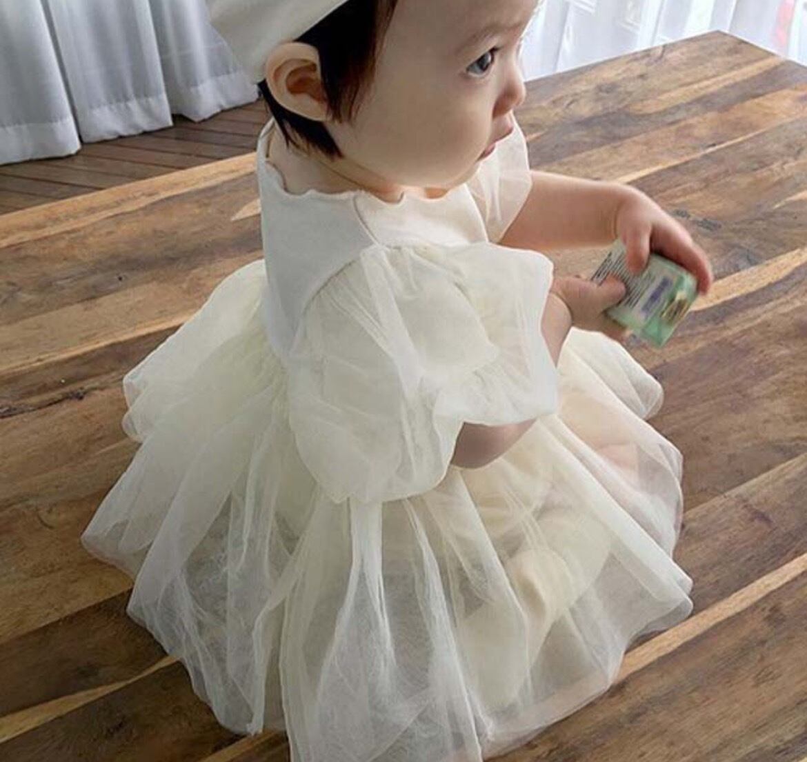 袖とスカートにたっぷりチュール使用でふんわり女の子らしいデザインです★