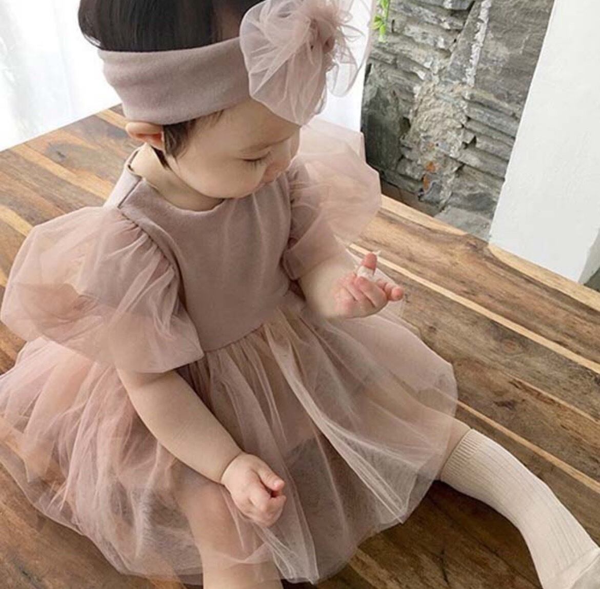 【即納】チュールスカートワンピース&リボンセット(ロンパースタイプ)